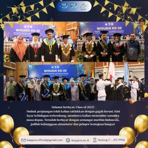 Ombak perjuangan telah kalian taklukkan dengan gagah berani. Kini layar kehidupan terkembang, membawa kalian menembus samudra masa depan. Teruslah berlayar dengan semangat maritim Indonesia, jadilah kebanggaan almamater dan pelopor kemajuan bangsa!